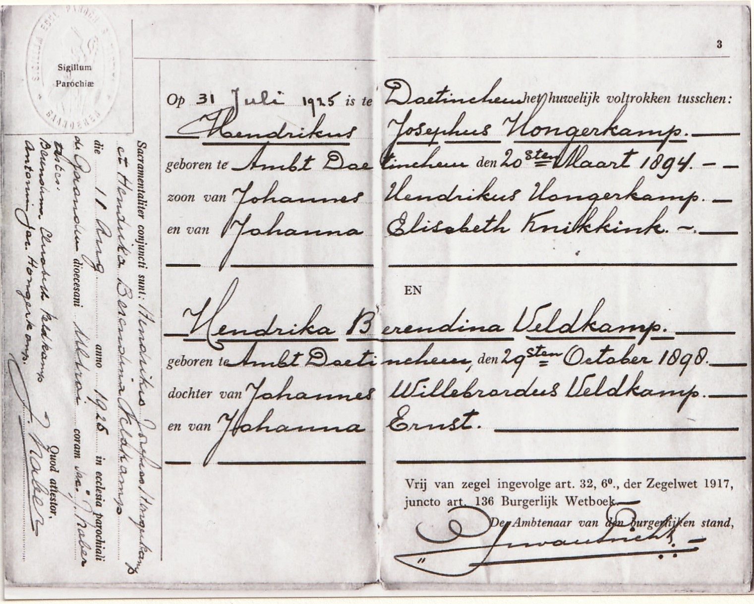 Trouwboekje (burgerlijke stand) Hent en Rieka dd. 31-7-1925.